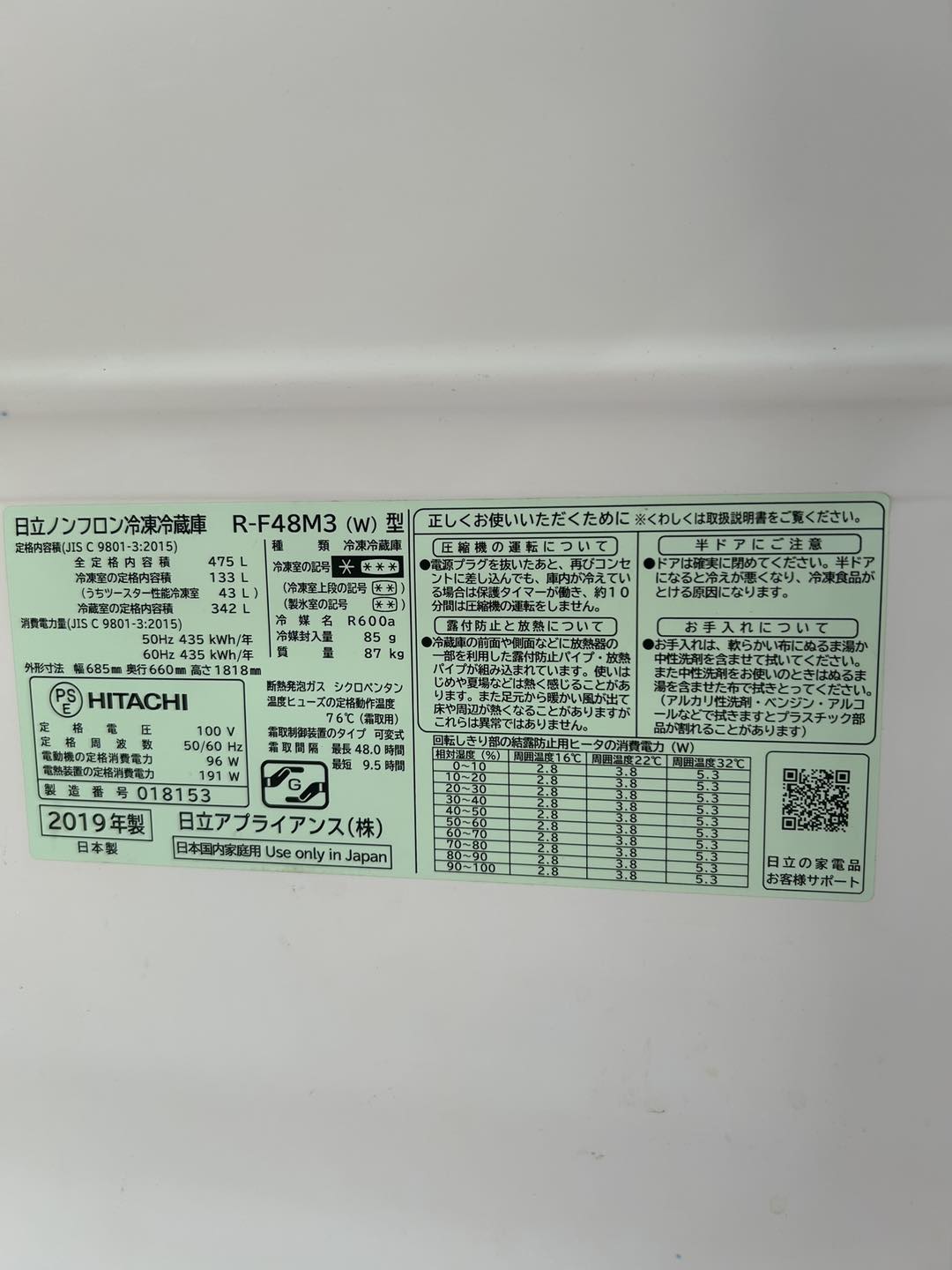 Tủ lạnh nội địa Hitachi R-F48M3 date 2019