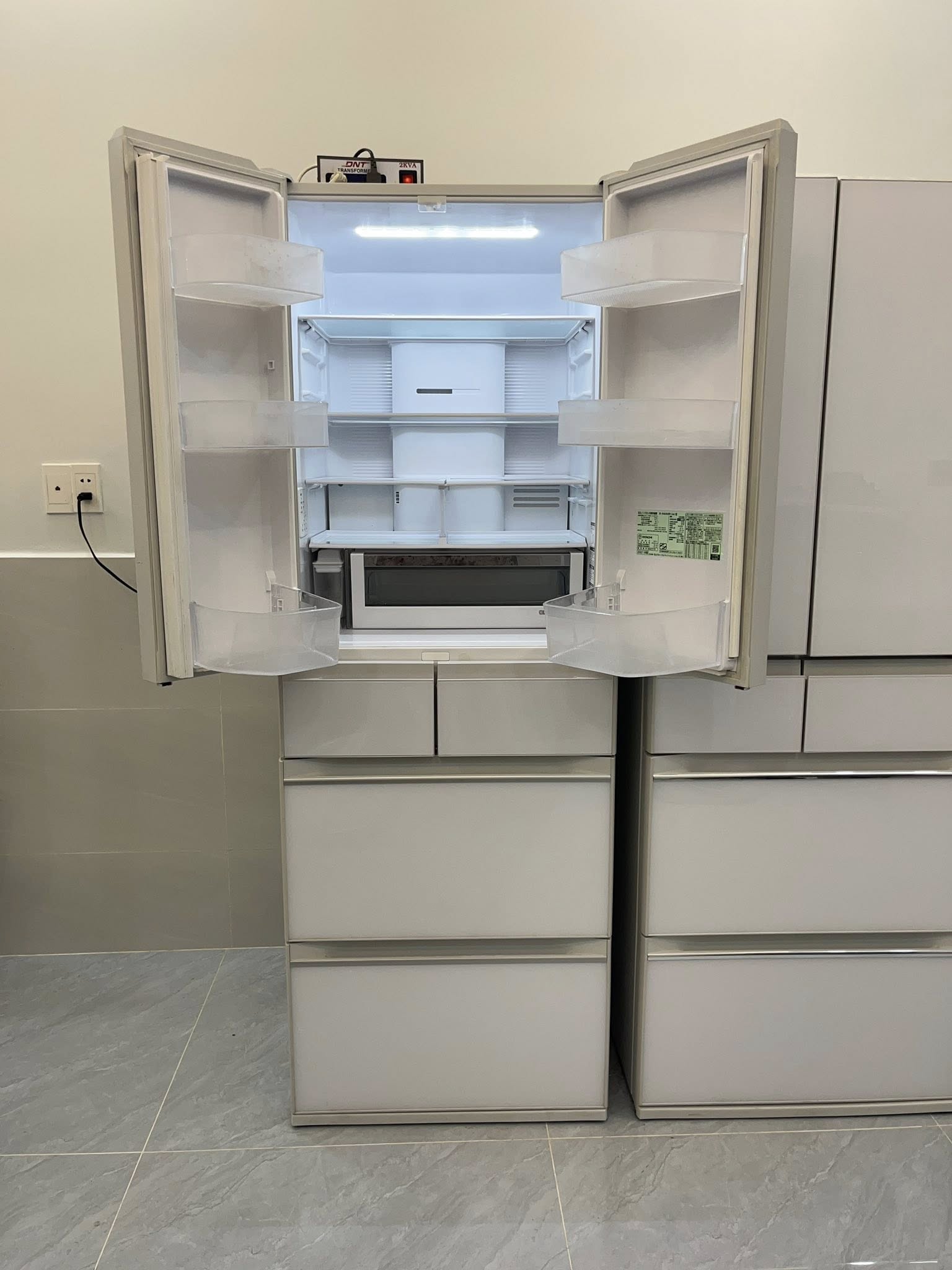 Tủ lạnh có dung tích 478 lít được chia làm 6 ngăn với ngăn lạnh 245 lít, ngăn cấp đông 95 lít, ngăn rau 95 lít, ngăn làm đá 20 lít và ngăn kem 25 lít.