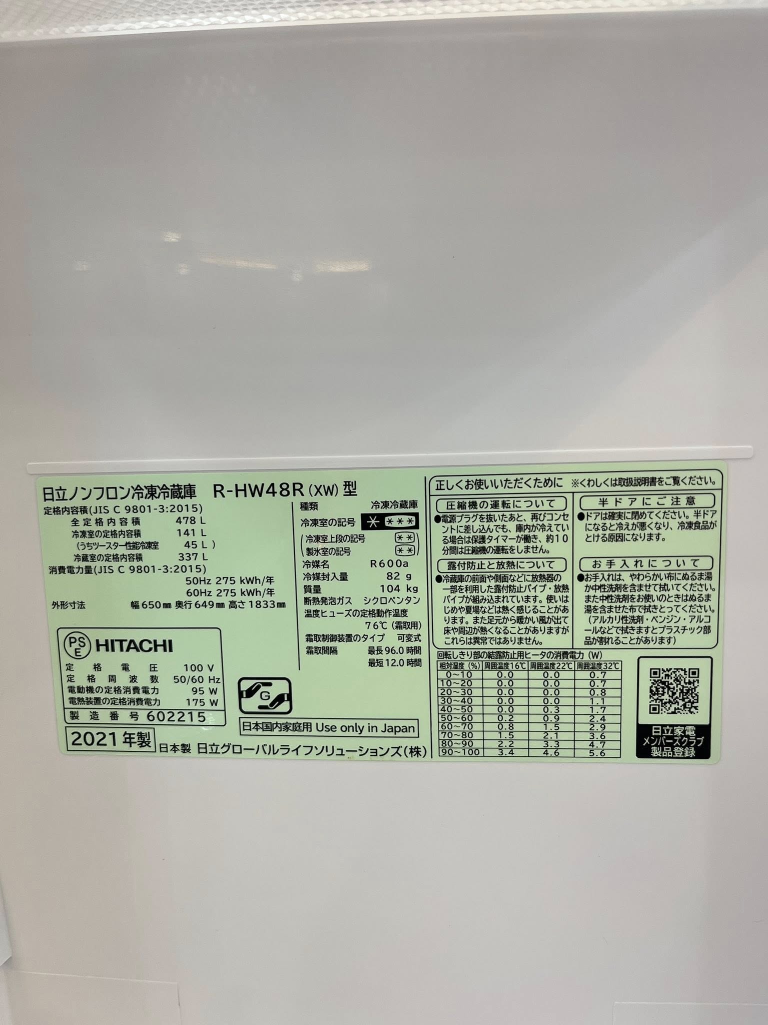 Tủ lạnh nội địa Nhật Hitachi R-HW48R
